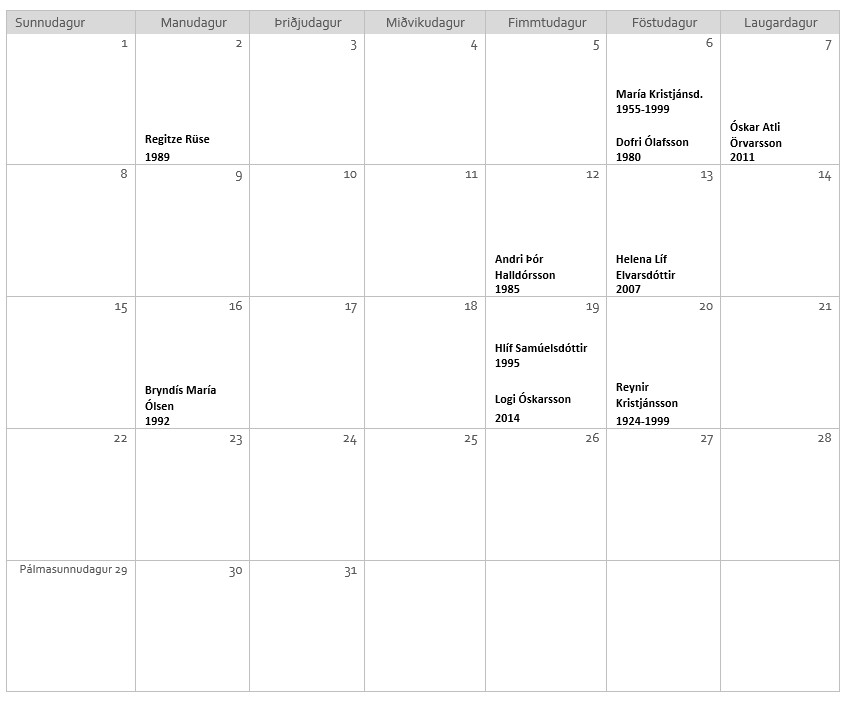 Afmæli í mars
