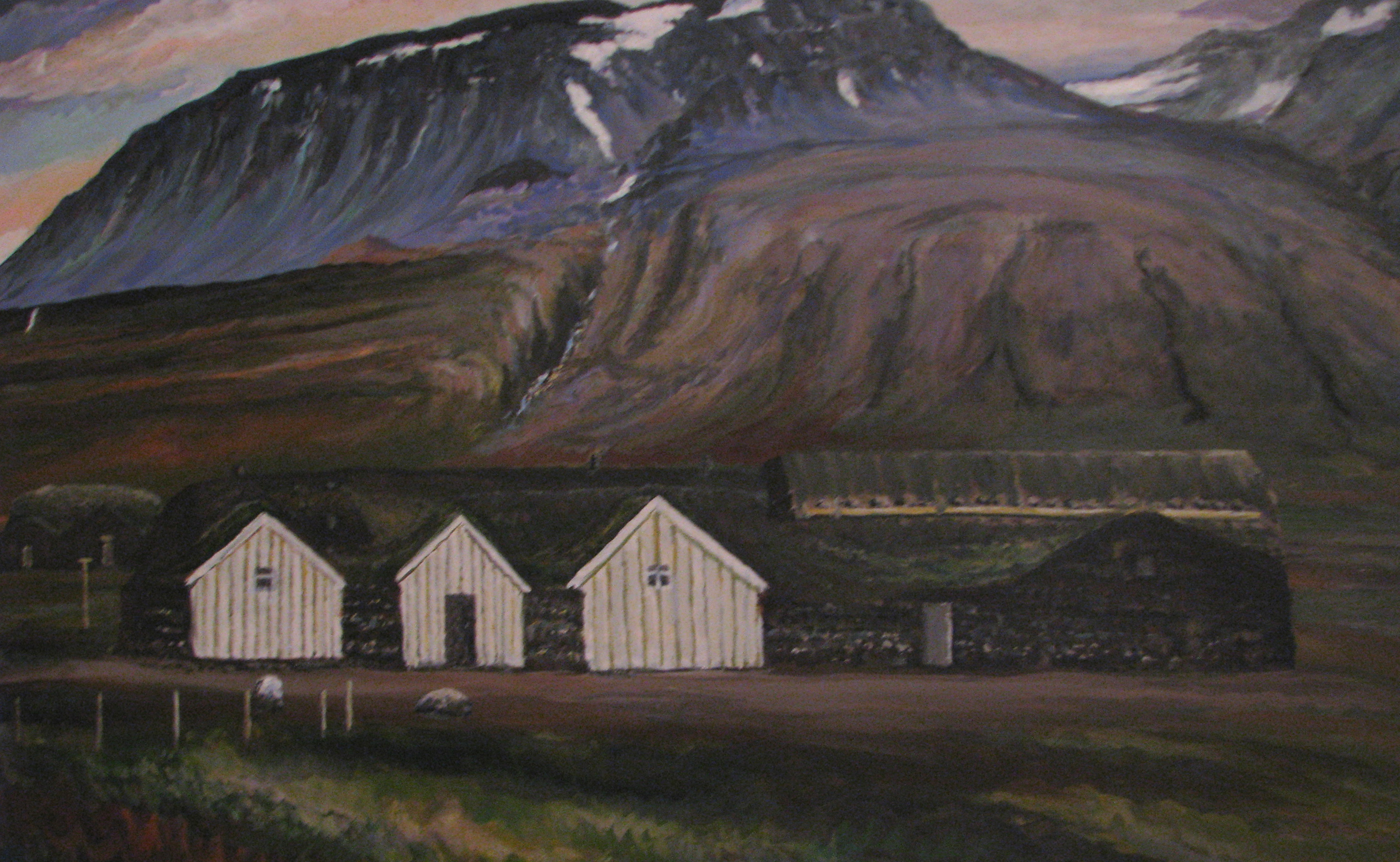 Dagbókarfærslur Frímanns - þá 16 - 17 ára - á fyrri hluta árs 1921. Þessi að mörgu leyti afleita mynd sýnir þó bæjarhúsin í Garðshorni um það leyti sem Frímann byrjar að skrifa dagbókarfærslur sínar. Í miðstafni voru svonefndar bæjardyr en skálar eða geymslur til hvorrar handar. Bak við ytri skálann, vinstra megin, var eldhúsÞvert á stafnana og bak við þá var baðstofan sem stóð uppi löngu eftir að búið var að rífa framhúsin og byggja nýtt steinhús sem íbúðarhús. Lengst til hægri var fjósið og heytótt þar á bak við en fjósið var flutt norður fyrir húsin og nýja íbúðarhúsið byggt þar sem fjósið stóð.